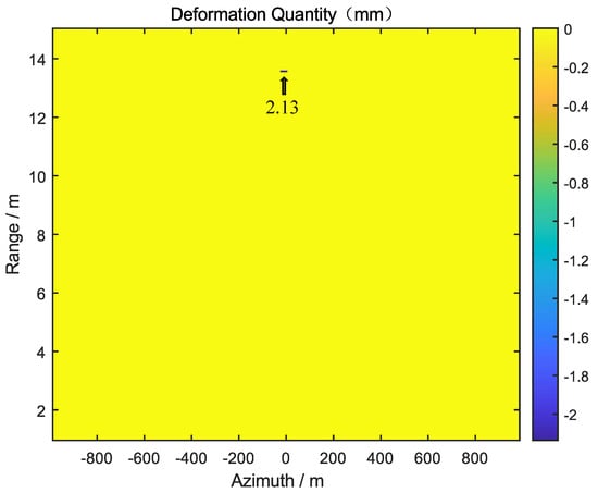 By moving the target along the X, Y, and Z axes by 2.0 mm, 2.0 mm, and 2.5 mm, respectively, the actual three-dimensional deformation of the target is 3.77 mm. First, the GB-SAR was used to monitor the radial deformation of the target, and the radial deformation, dl, of the target is 2.13 mm, as shown in Figure 14.