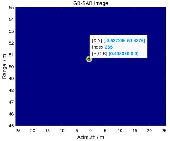 The position information of the target obtained by using GB-SAR is R = 9.82 m, as shown in Figure 9.