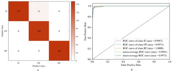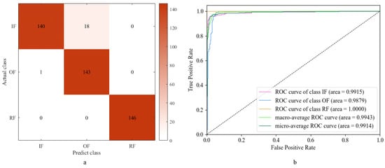Figure 16b illustrates that the AUC values for the three fault types are very close to one, indicating excellent classification performance across fault categories.