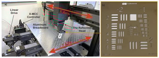 Data from the synchronization system and the TeraFlash device were read in dedicated software prepared in the 64-bit version of the LabView 21.0.1 environment. This software was used for controlling the movement of the X and Y drives, for assembling the acquired data into the resulting image, and for archiving these data. The software was also used to modify many parameters of the scanner, including the scanning range, step length, movement speed, and the number of averaged THz waveforms. The scanner can operate in the described synchronous mode and in the regular step-by-step mode, in which scanning takes place with the head stopping at a given point for the duration of data reading.