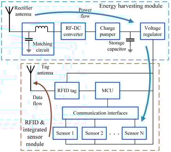System framework of the passive RFID tag-integrated sensor.