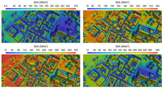 - Stendardo, N.; Desthieux, G.; Abdennadher, N.; Gallinelli, P. GPU-Enabled Shadow Casting for Solar Potential Estimation in Large Urban Areas. Application to the Solar Cadaster of Greater Geneva. Appl. Sci. 2020, 10, 5361. [Google Scholar] [CrossRef]
