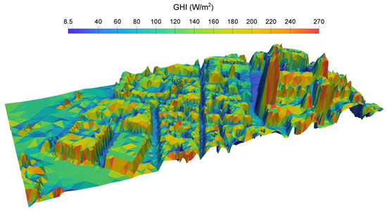Dealing with solar radiation and shadows is a common issue in Geographical Information Systems (GIS). This stems from a wide range of interests that go from visualization and rendering to many potential applications such as predicting the radiation at crucial environments like glaciers [2], the design of agroforestry exploitations [3] or, in the urban environment, project planning [4], the generation of solar radiation maps [5] essential for the deployment of concentrating solar power (CSP) plants [6], and for planning the optimal location and orientation of PV or solar thermal panels for distributed generation of electricity or heat for domestic applications on building roofs or facades [7,8,9,10,11,12,13,14,15,16]. The latter application demands reliable models for solar radiation and shadow casting at the local level that can deal with the complexities of urban architecture, which has a tremendous impact on blocking the solar radiation of nearby areas. Furthermore, this involves a high accuracy of the input so that it can guarantee to capture the mentioned architectural features. On top of all this, a contained computation cost is highly desirable.