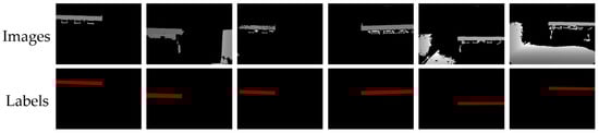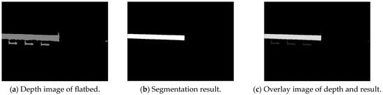 A total of 1378 flatbed segmentation data were produced. Twenty percent of the data was allocated to the validation dataset, while the remaining eighty percent was assigned to the training dataset. The overall accuracy test of the method was conducted after training; therefore, a separate test dataset was not established. Parts of the datasets are shown in Figure 13.
