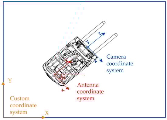 Positional relationship diagram between camera coordinate system, antenna coordinate system, and custom coordinate system.