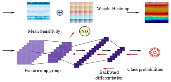 In the process of original data-to-result mapping, which is realized by the way of internal weight changes in machine learning, the learning process is affected by the attention information that is contained in the data directly. In order to explore the impact of the attention mechanism on the model, the Gradient-Weighted Class Activation Map (Grad-CAM), a weight visualization method for deep learning models, is introduced in the fault diagnosis method. As an advanced method for visualizing the weights of deep learning models, Grad-CAM can output a heat map of weights related to categories, which can clearly indicate the importance of the model’s weights to the sample by using different colors.