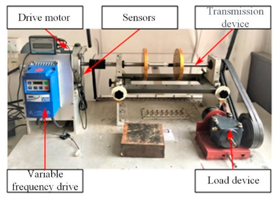 This experiment utilizes the MFS-Magnum motor fault comprehensive simulation experimental platform, manufactured by the company SQI, to simulate bearing faults. The experimental bearing platform designed for these simulation experiments is depicted in Figure 9. Three acceleration sensors, PCB PIEZOTRONICS 352C68, were installed in the horizontal and vertical radial directions of the motor front cover and the vertical radial direction of the motor, respectively, to collect the vibration signals. Three analog-to-digital conversion channels were set up for the synchronous acquisition of acceleration sensor signals. The sampling frequency was set at 12,800 Hz, and the sampling length was set at 15 s. Simulated fatigue spalling occurs due to the combined load bearing and relative rolling of both the inner and outer raceways, as well as the surfaces of the rolling elements. Under the influence of alternating loads, cracks initially form at locations experiencing maximum shear stress on the surface. Subsequently, these cracks expand to the contact surface, leading to the formation of spalling pits on the surface layer. Over time, this process progresses into the development of large flakes.
