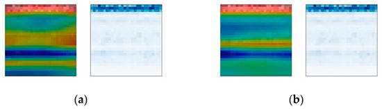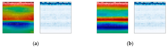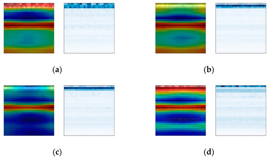 For a classified sample, the class probability output is denoted as , and the final generated visualization result is denoted as . In the first, partial derivatives for all channel feature maps, the output is obtained by the last convolutional layer of the CNN model. Then, global average pooling on the feature maps is performed to generate the average sensitivity of the sample category to the feature map in the channel ’s output by the last layer of the convolutional layer. The calculation process is as follows: