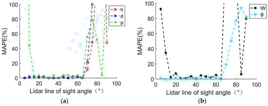 MAPE for extracting parameter values varies with LOS. (a) MAPE for extracting values of h, d, ρ; (b) MAPE for extracting values of W, θ.