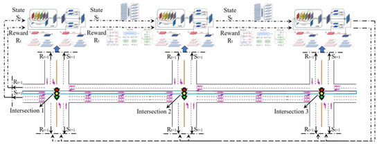 - Zhang, W.; Yan, C.; Li, X.; Fang, L.; Wu, Y.-J.; Li, J. Distributed Signal Control of Arterial Corridors Using Multi-Agent Deep Reinforcement Learning. IEEE Trans. Intell. Transp. Syst. 2023, 24, 178–190. [Google Scholar] [CrossRef]
