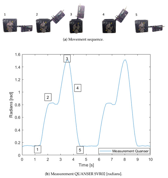 Test movements, (a) view of the movements at 5 waypoints, (b) measurement angles in Quanser SRV02.