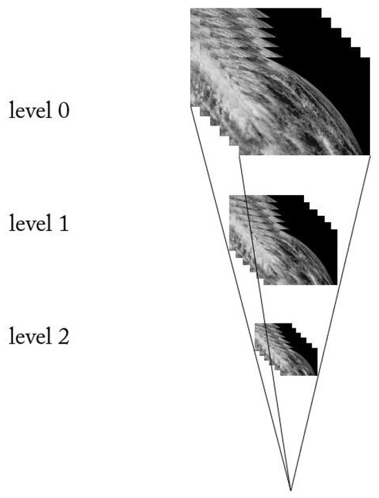 This is a series of images obtained by successive downsampling of the maximum resolution image at the bottom. The image at the bottom has the highest resolution, and the image resolution decreases as you go up.