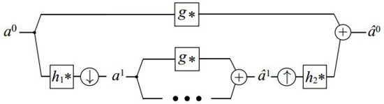 where the subscript l signifies the hierarchy level, represents the unfiltered data retained at each level, and ↓ indicates the subsampling operation. The transformation begins by initializing , where a denotes the input signal intended for filtration.