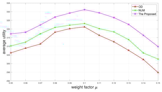 Figure 7 shows that the average utility first increases and then decreases as the weight factor