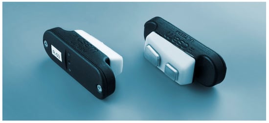 The ULTEEM device addresses this need thanks to its clip-on solution: the two sensors are not an integral part of the eyeglasses. This is a key difference of ULTEEM compared to devices generally referred to as smart glasses, in which sensors are integrated to the eyeglasses. The design of ULTEEM allows the patients to remove the sensors when they feel uncomfortable. This feature is primarily possible due to the measurement technology [22], which allows for connecting two sensors with an unshielded and uninsulated wire. The technology therefore allows use of the metallic frames of the eyeglasses to electrically connect the two sensors—which is necessary to measure a potential difference between two points.