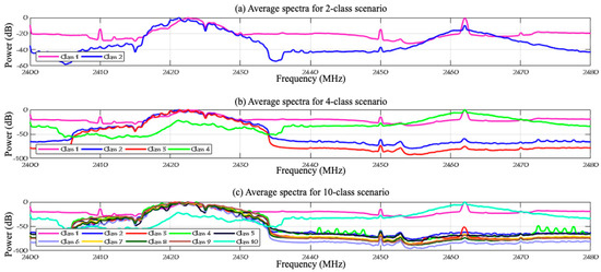 A sophisticated UAV detection and identification algorithm was proposed by [30]. They developed an open-source RF signals database called droneRF [32] that contains a variety of UAV models and modes, which was used to train their algorithm. Three deep neural networks (DNN) were used to detect the existence of UAV, the existence of UAV and the making model, and finally the existence of UAV, the making model, and the flying mode. Every DNN’s performance is tested with a 10-fold cross-validation technique along with several metrics The average accuracy for the first DNN (2 classes) is 99.7%. However, using the second DNN (4 classes), the accuracy is 84.5%, and finally, the third DNN (10 classes) scored 46.8%. Increasing the number of classes had an immediate negative impact on the classification results where they reveal a general reduction in performance, which can be attributed to the similarities between Bebop and AR UAV models in terms of the RF communication signals. Their results approve the viability of the created RF database for UAV detection purposes.