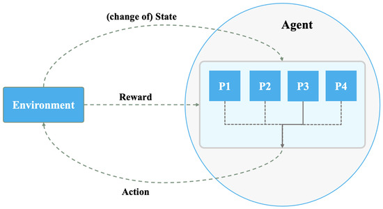 - Sutton, R.S.; McAllester, D.; Singh, S.; Mansour, Y. Policy Gradient Methods for Reinforcement Learning with Function Approximation. In Proceedings of the Advances in Neural Information Processing Systems; Solla, S., Leen, T., Müller, K., Eds.; MIT Press: Cambridge, MA, USA, 1999; Volume 12. [Google Scholar]