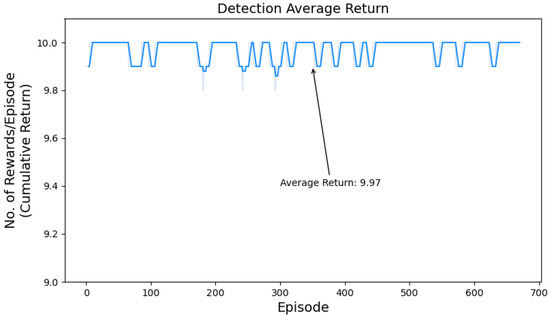 An alternative proposal is the integration of the real-time object detector EfficientNet-B0 and the double deep Q-network (DDQN) method in [47]. The UAV agent uses a camera that is mounted on top to capture photos that are used to detect intruding UAVs by applying image processing. Each state consists of the processed image as well as a group of scalar values that determine the velocity and a variety of distance evaluations. After training the DDQN model, they employed a human operator to control their UAV agent for capturing stationary and non-stationary intruding UAVs. The performance results of both training and testing demonstrate the agent’s capability to capture intruding UAVs. Furthermore, the agent avoids colliding with any environmental obstacles with a success rate of at least 94%. Furthermore, a comparison was made between the performance of their DDQN model and that of human pilots. It was observed that the agent trained with DDQN demonstrated a faster process of capturing intruding UAVs. This is because human pilots find it difficult to fly and control the UAV using a remote controller. However, the agent using the DDQN model almost never misses the target while attempting to capture it.