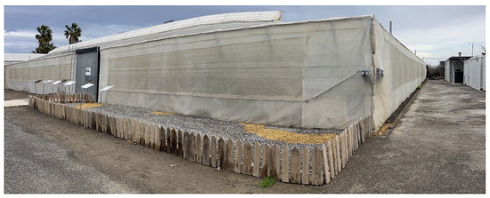 The experiments took place at the Agroconnect facilities (which received cofunding from the Ministry of Science, Innovation, and Universities in collaboration with the European Regional Development Fund (FEDER) under the grant program for acquiring cutting-edge scientific and technological equipment (2019)) in the Municipal District of La Cañada de San Urbano, Almería, located at 36°50′ N and 2°24′ W, with an elevation of 3 m above sea level and a slope in the terrain of 1% in the northern direction (see Figure 3).