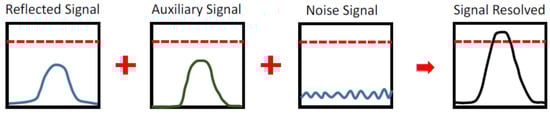 The schematic of auxiliary light amplifies the reflected signal optically. The solid line represents the signal value, and the dotted line represents the threshold value.