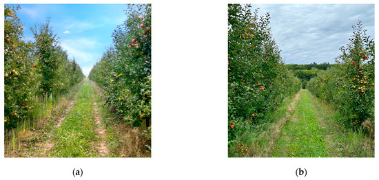 The duration of the UAV group’s mission is constrained by the battery’s life and the prevailing weather conditions. The experiments took place at the “SAM+” Farming Enterprise’s apple orchard, located in the village of Kuzmin, within the Horodotska urban territorial community of the Horodotsky district in the Khmelnytskyi region. The orchard primarily features slender spindle apple trees, covering a total area of 50 hectares. The orchard rows vary in length from 500 to 800 m, with trees planted at 2-meter intervals, a 4-meter width between rows, an average tree height of 3.5 m, and a rootstock of 106 mm. The farm estimates that each apple tree produces around 200 apples per season.