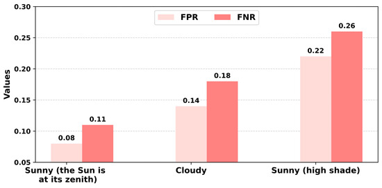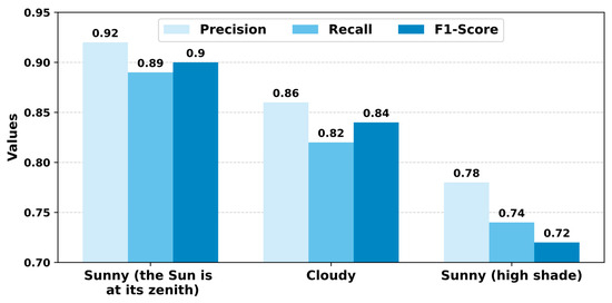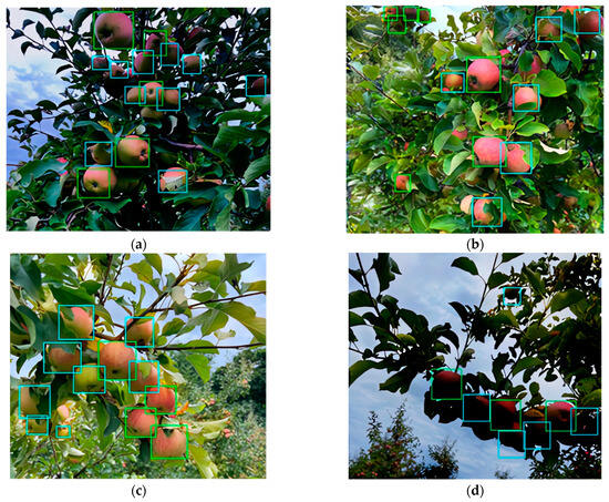 (3) Another experiment was executed on 29 September 2023, from 19:00 to 20:00, in sunny weather with the evening sun near the horizon. The setting sun resulted in a significant shading effect on the fruits within the apple orchard.