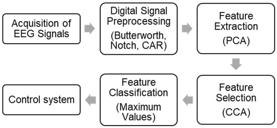 This section explains the design of the BCI. The acquired EEG signals go through different stages. The architecture is shown in Figure 6.
