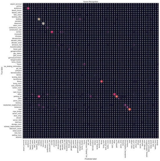 Confusion matrix of Configuration 6 on the scene recognition task.