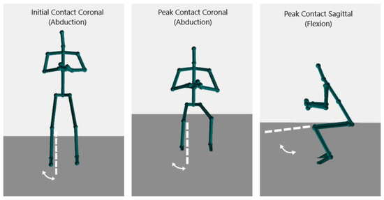 Images of the of the output from the Kinect V2 demonstrating the initial coronal, peak coronal, and peak sagittal angles during a DVJ.