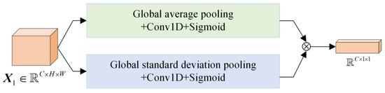 zm and zsd accumulate global information in different ways and then perform one-dimensional convolution on them, respectively. Note that zm can effectively extract salient information, and zsd can extract differential information. After a combination of convolution and activation, the channel attention weight is obtained.
