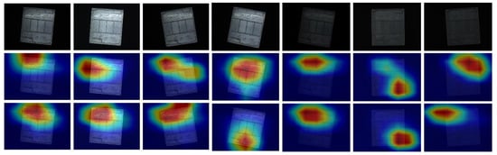 Attention feature visualization. Note that the first row denotes the original images, the second row denotes the results obtained by EfficientNet, and the third row denotes the results obtained by the proposed ML-EfficientNet-B1.