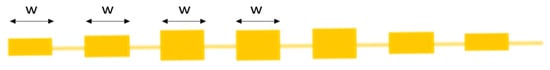 Layout of 1 × 7 series-fed microstrip patch antenna.