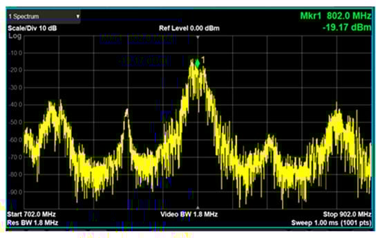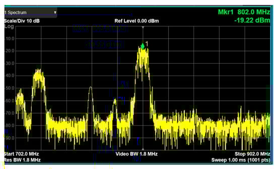 RF transceiver down-converter output signal measurement at 802 MHz.