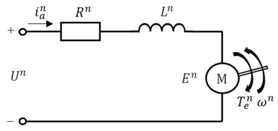For each subsystem n, the equivalent circuit diagram of the brushed DC motor is as shown in Figure 2. In this context, the meaning of each parameter in the block diagram is given as follows: