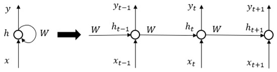The following equation depicts the input-output mapping of RNNs. The current hidden layer node is linked not only to the current input but also to the previous hidden layer node :