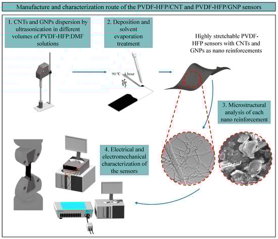 Figure 1 shows a visual scheme of the complete route of manufacturing and characterization of the different types of sensors manufactured during this study.