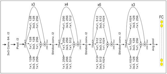 where C is the cardinality and T represents each branch’s transformation function. The residual block is shown in Figure 3, and the branch’s transformation is represented as follows.