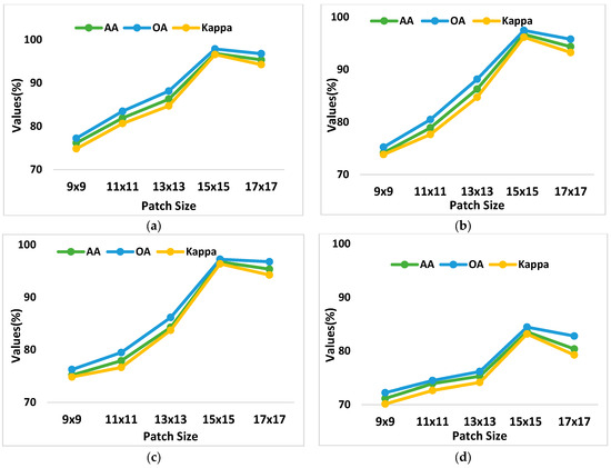 In this section, we discussed the datasets used to evaluate the proposed method for hyperspectral image classification. Four benchmark hyperspectral datasets, PU (Pavia University), PUC (Pavia University Centre), SV (Salina Valley), and Houston-13, were selected for this study. The PU dataset captures an area covering Pavia University, Italy, and was acquired by the Reflective Optics System Imaging Spectrometer (ROSIS) sensor. The spatial dimensions of the dataset are 610 × 340 pixels, and each pixel represents a ground area of 1.3 m × 1.3 m, which is the spatial resolution of the dataset, which has nine land cover classes. The PUC dataset has spatial dimensions of 1096 × 715 pixels. The image in PUC is larger than the Pavia University dataset, which has 610 × 340 pixels. It contains 102 bands, and it has nine land cover classes.
