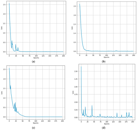 Intel Xeon Gold 5222 3.8 GHz Processor (Intel Corporation, Santa Clara, CA, USA), Kingston 128 GB DDR4 2933 RAM (Kingston Technology Company, Fountain Valley, CA, USA), Kingston 1 TB 7200 RPM SATA HDD (Kingston Technology Company, Fountain Valley, CA, USA), Kingston 500 GB SSD (Kingston Technology Company, Fountain Valley, CA, USA), Nvidia Quadro RTX 4000 8 GB Graphics Card (Nvidia Corporation, Santa Clara, CA, USA), 24 Inch Dell TFT Monitor (Dell, Round Rock, TX, USA), Dell USB Mouse (Dell, Round Rock, TX, USA), Dell KB216 Wired Keyboard (Dell, Round Rock, TX, USA), Microsoft Windows 10 Operating System (Microsoft Corporation, Redmond, WA, USA), Python 3.8 Programming Language (Python Software Foundation (PSF), Wilmington, DE, USA), and Tensor Flow 2.0 open-source Machine Learning Framework (Google, Menlo Park, CA, USA). The Adam optimizer with an initial learning rate of 0.001 accelerates the training process and trains each model for 200 epochs with a batch size of 128.