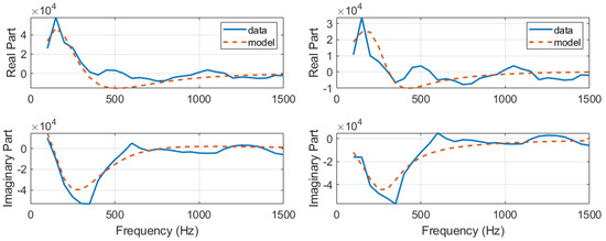 Next, let us see an example for the model from (6). For the identification provided in Figure 3, the model coefficients averaged over the 33 samples of impedance values over time are as follows: , , , , , , , , , , , , and .