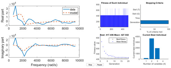 An example of identification result for the compact FOIM model in 4 parameters (left) and its genetic algorithm optimization solver view (right).