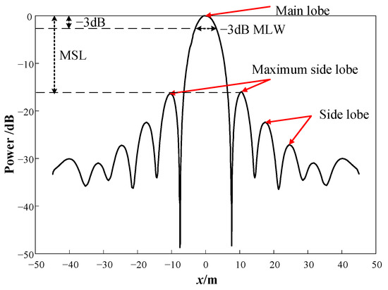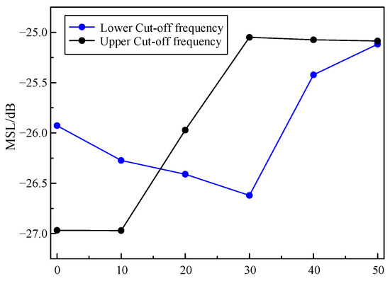 The MSL refers to the ratio of the maximum side lobe to the main lobe. Since the beam pattern in Figure 4 has been normalized and transformed into a logarithmic form, the MSL can also be understood as the difference between the maximum side lobe and the main lobe. Therefore, the smaller the MSL is, the better the side lobe suppression effect is, and the main lobe is more prominent.