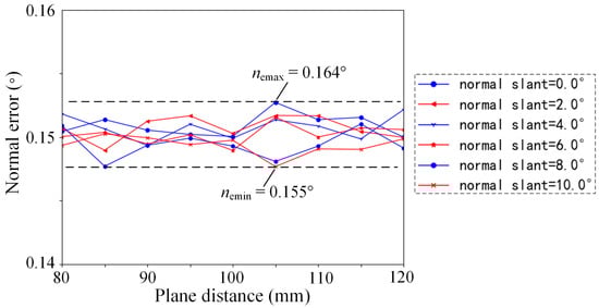 Normal measurement error influenced by the plane distance and normal slant of the measured planes.