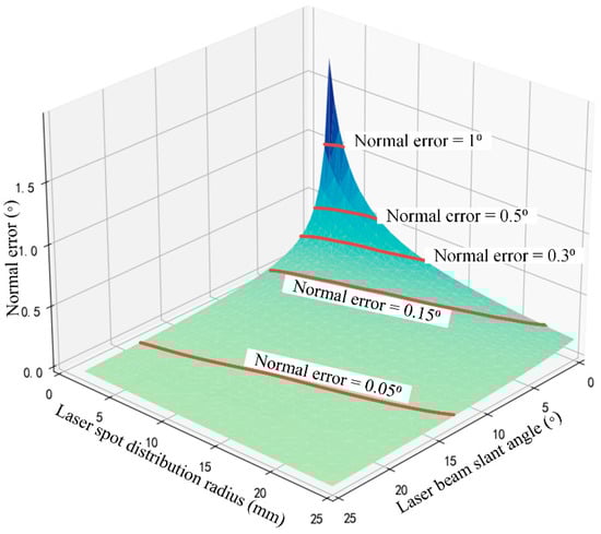 Normal measurement accuracy influenced by both laser beam slant angle and laser spot distribution radius.