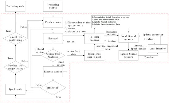 Figure 7 depicts the PG-DDQN training structure on the abstract plane grid motion model, indicating that the training process consists of several steps.