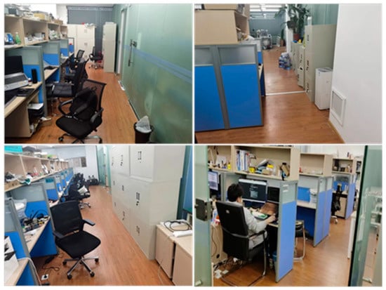 The experimental verification used the laboratory indoor environment to simulate the chemical plant scene. The roads in the scene are complex; the site environment is shown in