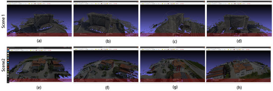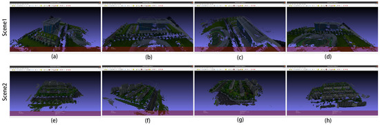 (a–h) are the three-dimensional reconstruction modeling diagram of the two scenes in Figure 12.