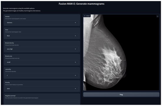 Graphical user interface of MAM-E for generation of synthetic healthy mammograms.