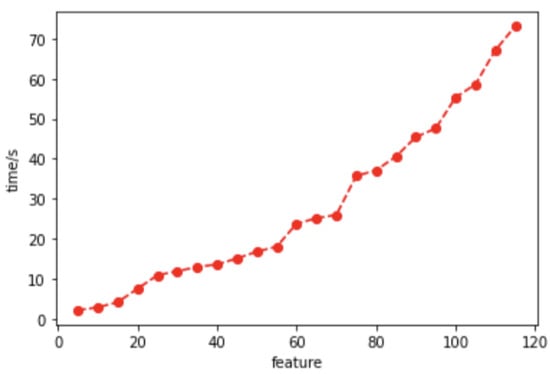 In our method, we use Fisher Score to select the best features. It calculates the Fisher Score for each feature and ranks the importance of the features based on the scores. Then, irrelevant and redundant features are filtered out and important features are retained to improve model performance. Specifically, the Fisher Score evaluates significant features by intra-class feature distance and inter-class feature distance. The calculation rule is as follows: define a total of c classes and n samples in the data set. Each class contains samples. is defined as the value of a specific sample x at the k-th feature. denotes the mean of the values taken by all samples of class i on the k-th feature, and denotes the mean of the values taken by samples of all classes in the dataset on the k-th feature. The interclass variance and intraclass variance defined at the k-th feature on the dataset are given by Equation (2) and Equation (3), respectively. The Fisher Score function is defined for the k features in the data set, and Formula (4) is given. It can be seen that when the interclass variance is larger and the intraclass variance is smaller, the Fisher Score is larger, and then the feature is more discriminative.