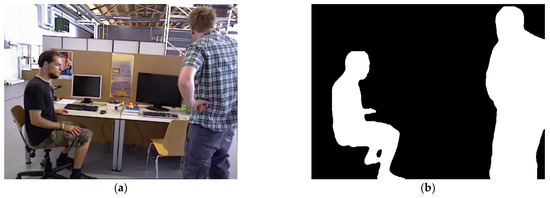 Mask information image. (a) Original image and (b) binary mask image.